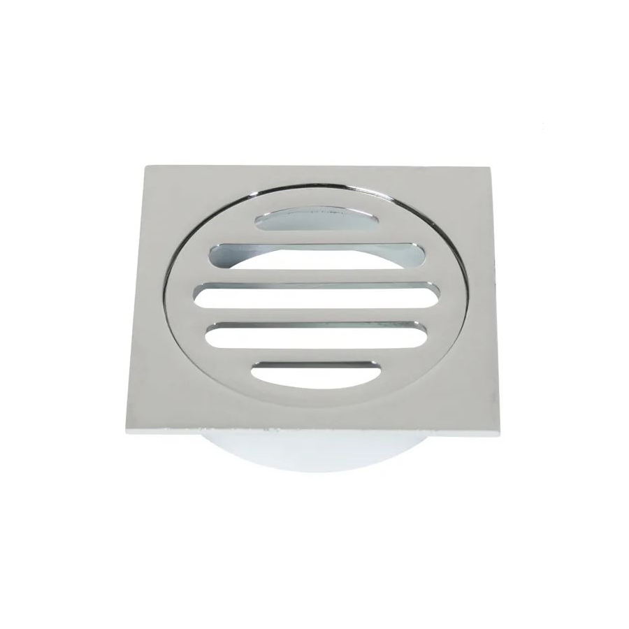 A chrome plated solid brass floor waste.