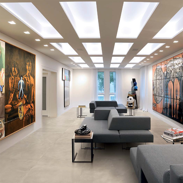 Concrete teams up with resin and colour. The blend of the two materials represents the perfect marriage between the minimalism of concrete and the creativity expressed in the artist’s brush stroke to describe a concrete look. Use indoors and continue to covered al fresco and patio areas. Made in Italy.